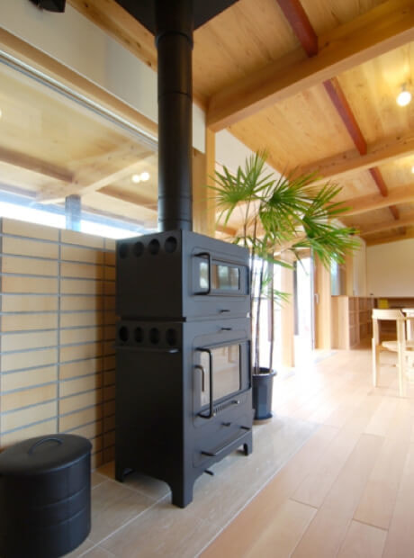 木質バイオマスエネルギーの利用、オーブン付きの薪ストーブ。